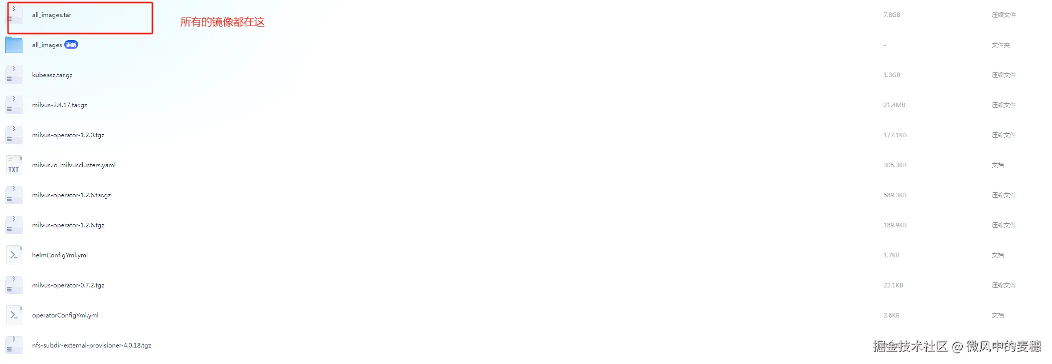 总包中包含docker、attu 、milvus-operator、milvusdb/etcd、calico/cni、kubernetesui/dashboard、coredns、milvusdb/milvus、portainer/portainer-ce各离线镜像。