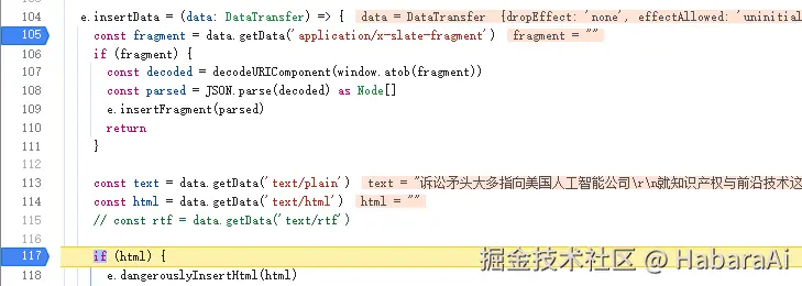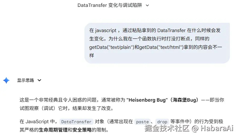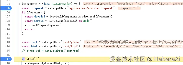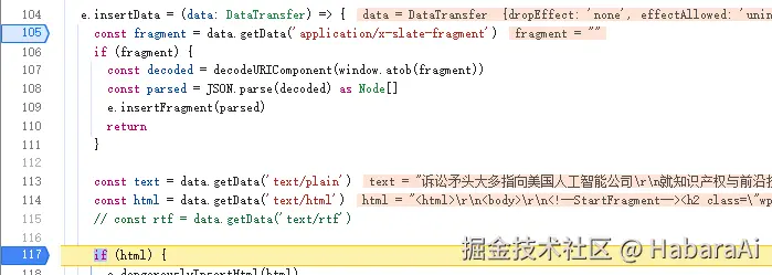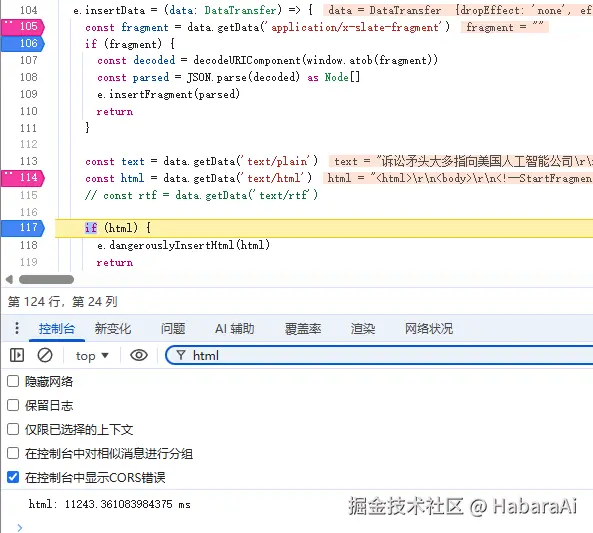 DataTransfer 的 getData 方法在有和没有断点的情况下,获取 text/html 类型的值不一样的问题,从而导致后续处理逻辑不一致的问题。