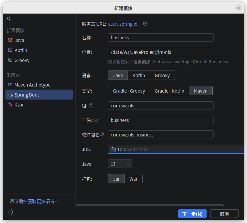 将nls下pom的三个标签,复制覆盖到business的pom里,然后去掉relativePath标签和冗余的