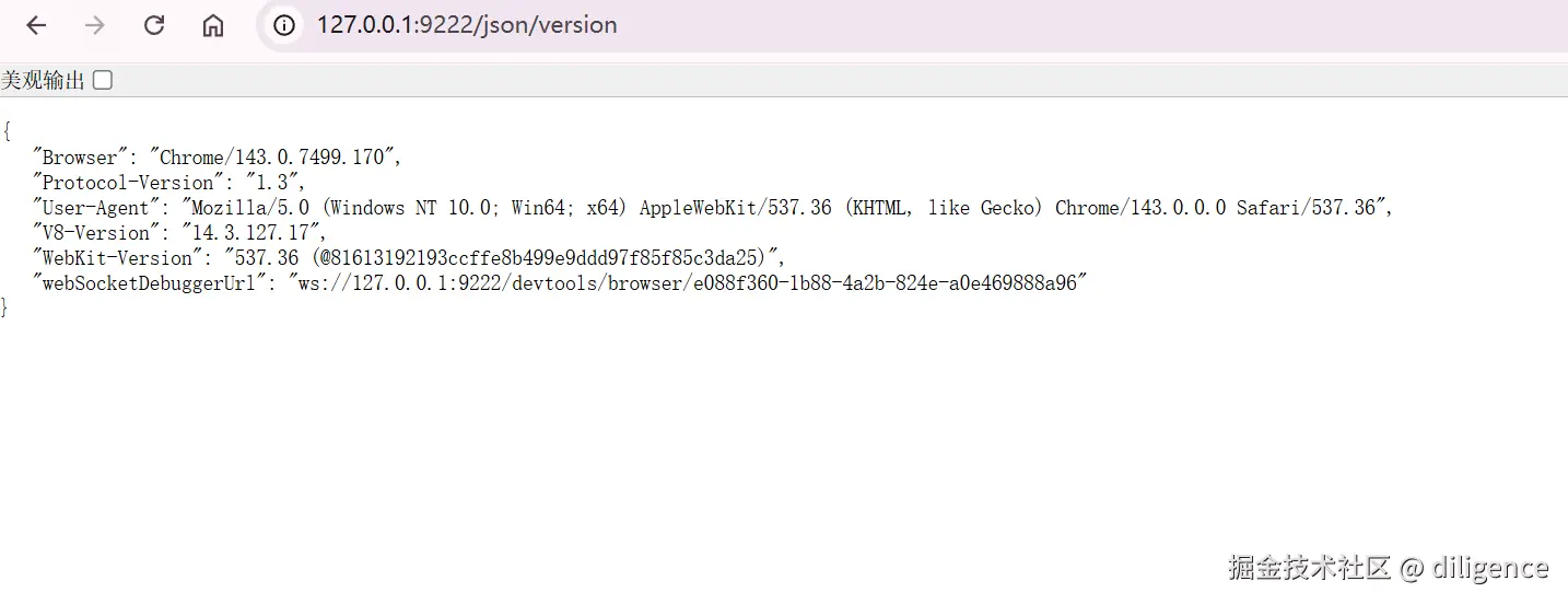 如果返回 JSON 数据,说明 Chrome DevTools Protocol 已就绪。