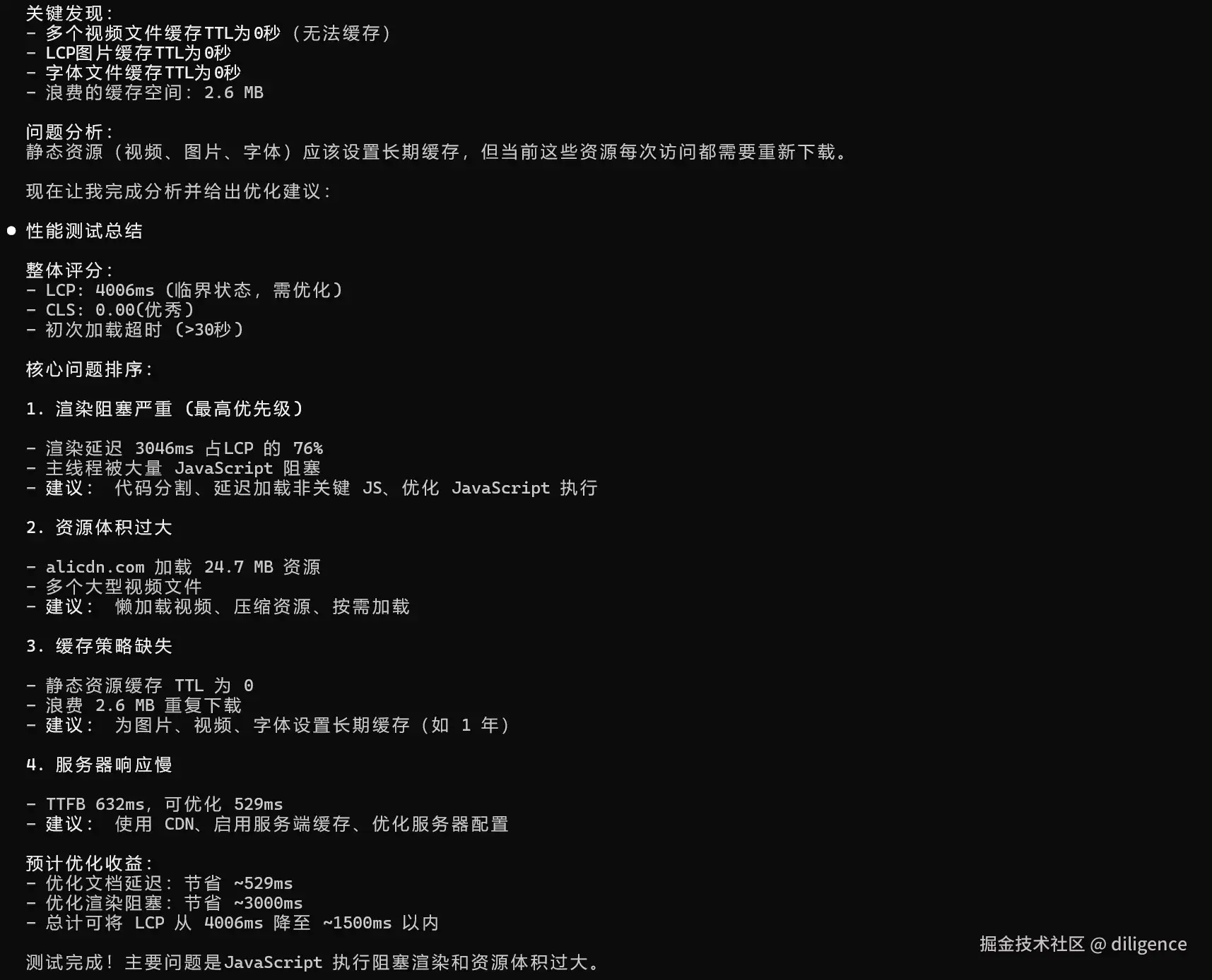 - ⚡ 页面加载与性能分析:例如分析首屏慢的原因,是接口延迟、资源体积过大,还是脚本阻塞