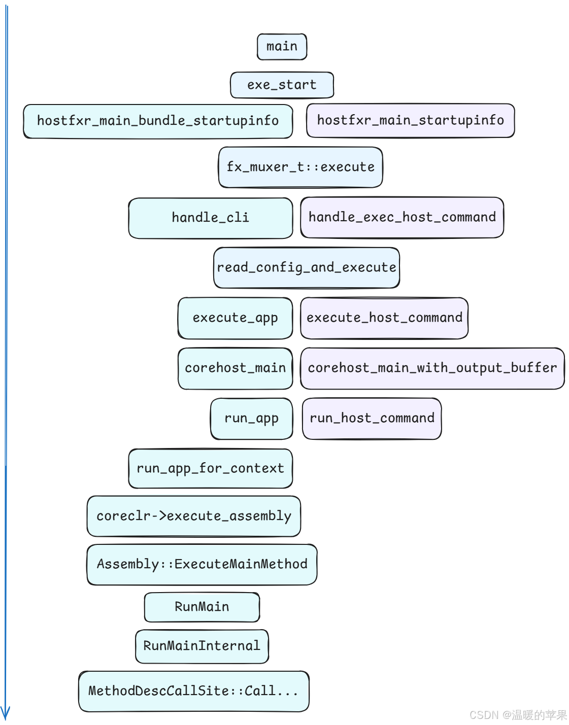 传入指定的托管程序集路径、命令行参数,在指定的 AppDomain 中加载该程序集,并执行程序集的入口方法,最终返回程序的退出码。