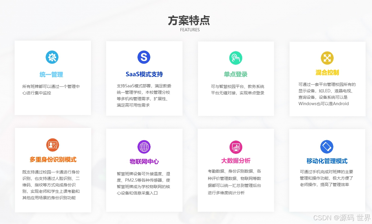 随着时代进步,数字信息化不断发展,很多学校都开始了数字化的转变。智慧校园电子班牌系统是电子班牌集合信息化技术、物联网、智能化,电子班牌以云平台、云服务器为基础,融合了班级文化展示、课程管理、物联控制、教务管理、考勤管理、素质评价、资源管理、家校互联等一系列应用。实现了学校、教师、学生、家长多端的信息互通,让校园管理一体化、数据化,真正做到将智慧校园落地,有效地推进了教育模式的变革与创新。
