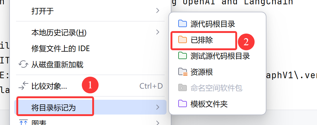 选择菜单中的"标记目录为" → "排除的目录"