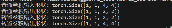 print(f"转置卷积输入形状: {x_conv.shape}") # torch.Size([1, 1, 2, 2])