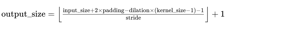空洞卷积的输出尺寸公式需要加入 dilation 参数,完整公式: