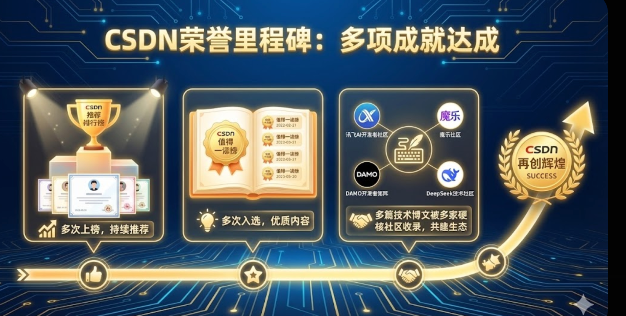 2025 年我的 CSDN 内容侧里程碑记录(多次上榜/优质内容入选/多社区收录等)。这些"结果"对我更像是一个校验:硬核内容是否真的被持续阅读、复用与验证。
