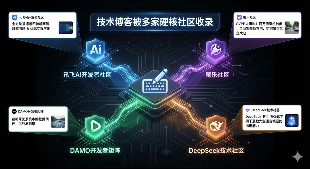 2025 年部分文章被讯飞 AI 开发者社区、魔乐社区、DAMO 开发者矩阵、DeepSeek 技术社区等收录。对我来说这不是展示项,而是一个工程指标:内容是否具备可复用性与传播性。