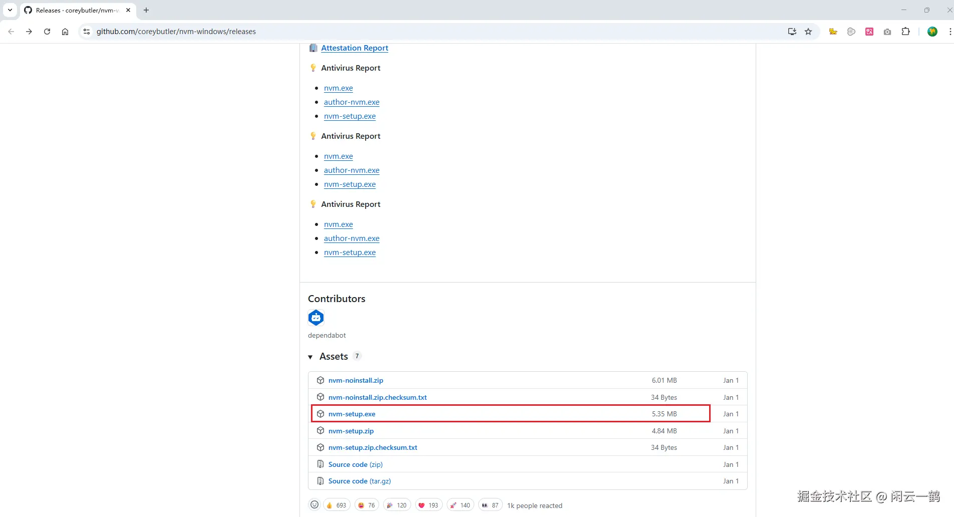 下载安装包(nvm-setup.exe)安装到本地(选择默认安装路径并且一直点击下一步即可),注意自定义路径注意不能有中文或者空格