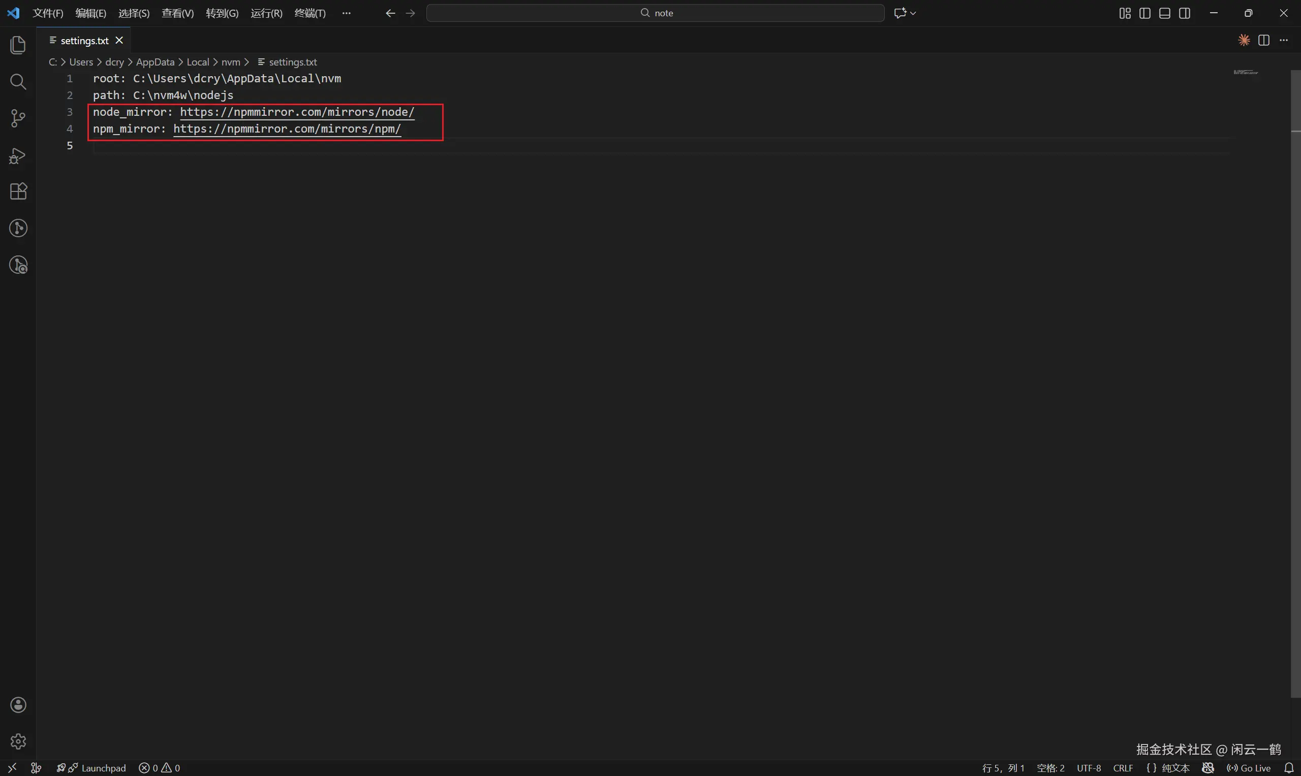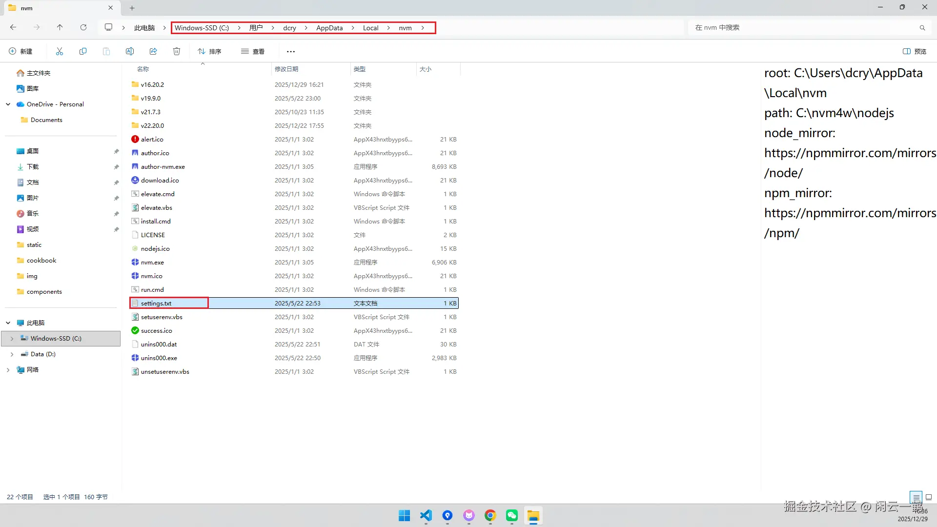 前面提醒的 nvm 安装目录还记得住吗?默认目录一般在这个位置"C:\Users\你的用户名\AppData\Local\nvm"