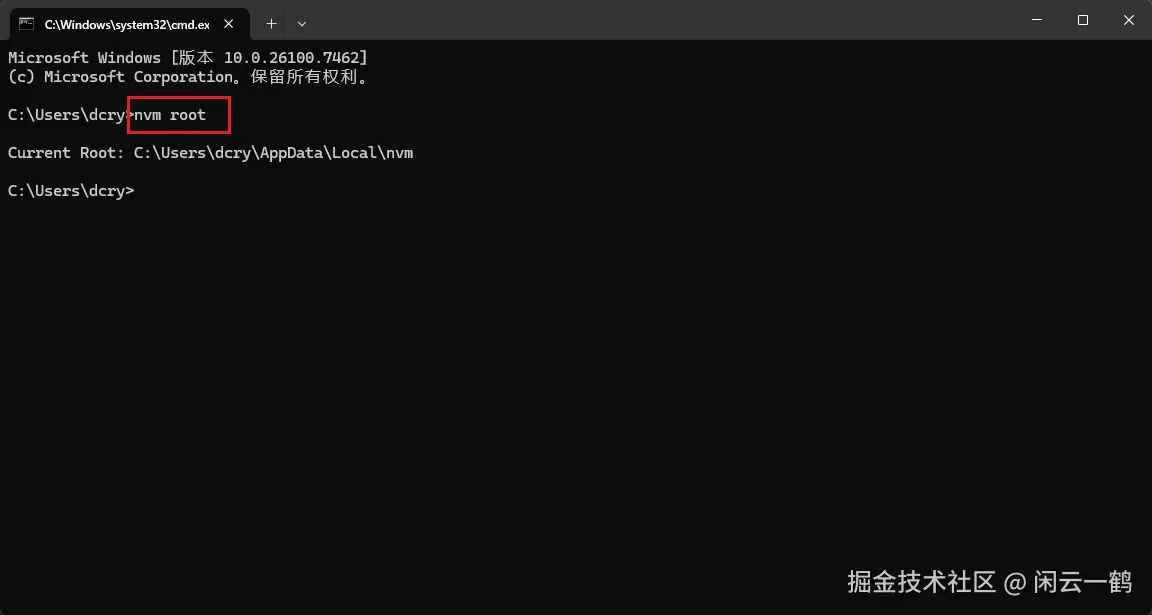 nvm root // 查看nvm的安装根路径在哪个文件夹