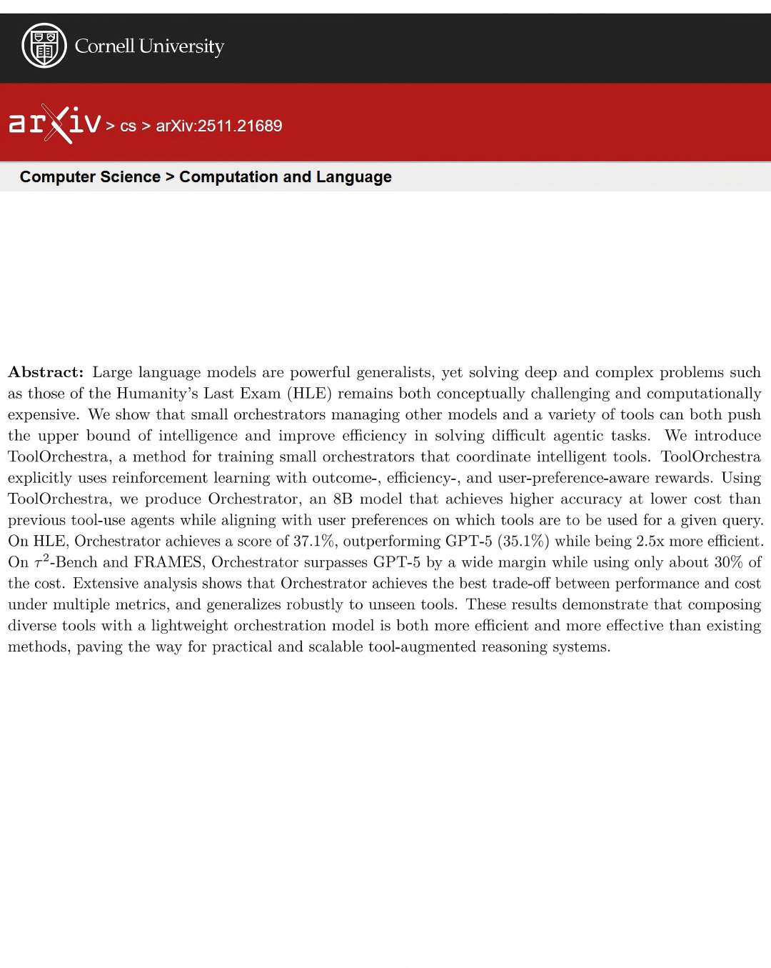论文标题:ToolOrchestra: Elevating Intelligence via Efficient Model and Tool Orchestration
