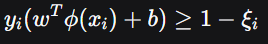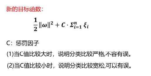 式子可以不用深究,我们就把软间隔的存在当作一个错误数据的缓冲区,一个容错空间,与此同时我们也要对软间隔进行约束,不能让所有数据都在软间隔里,也不能让有异常的数据在软间隔外。