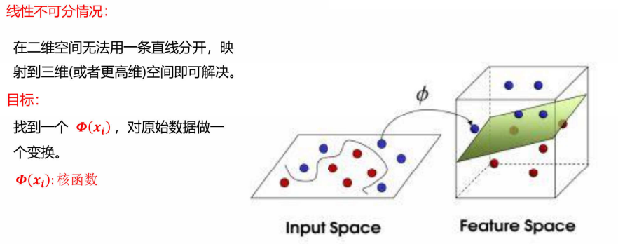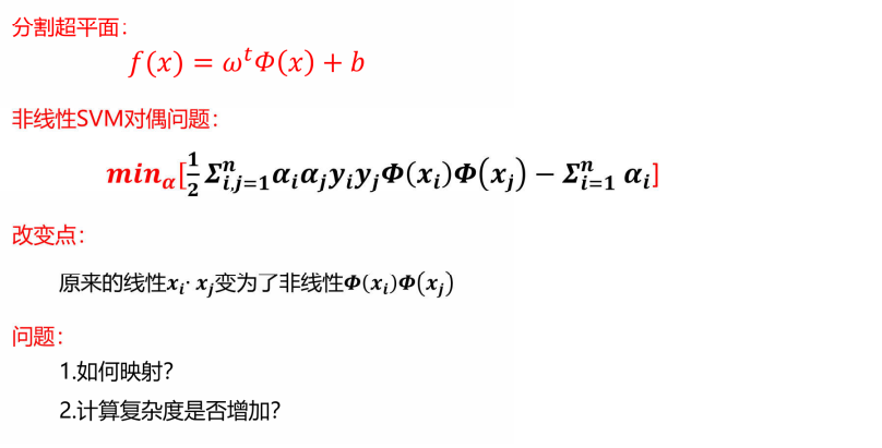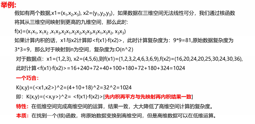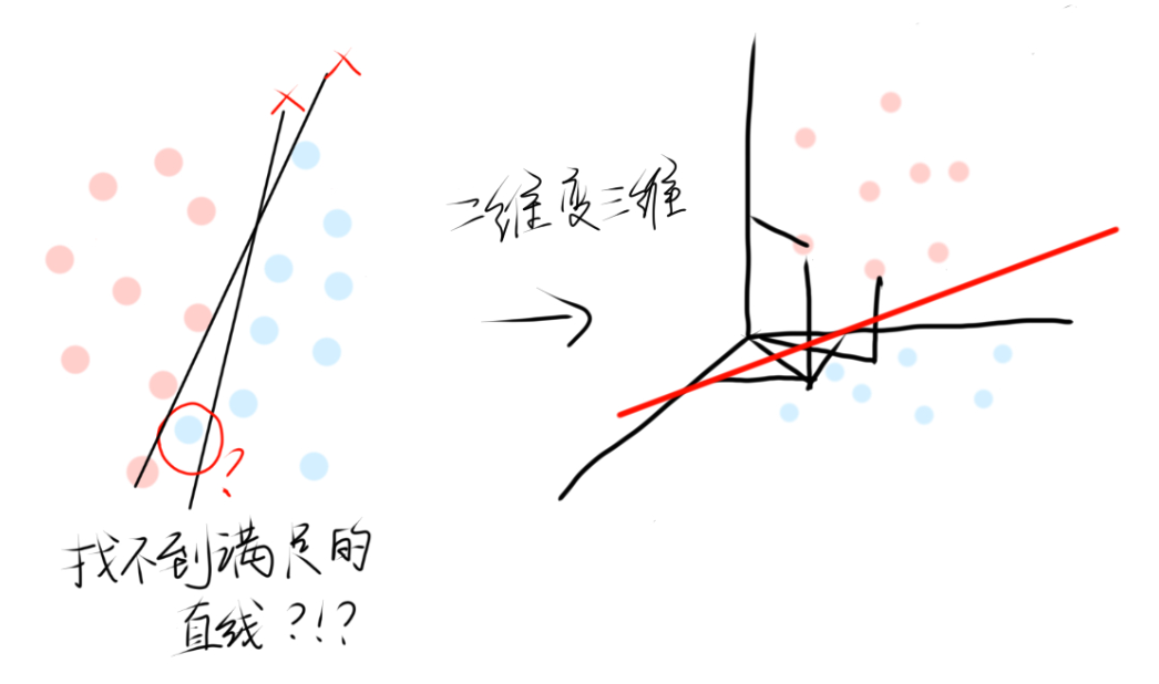 关于为什么升维就可以划分类别,其实这个问题很简单,可以把二维图看成是三维图的俯视图,二维时看似已经找不到合适的直线,但构造出三维后,就可以找到合适的直线(超平面),这里涉及到的是数学的空间问题。