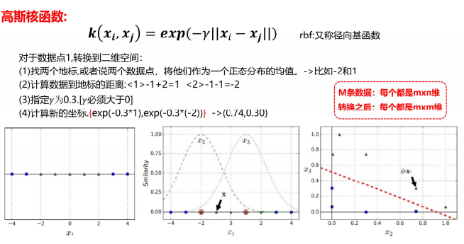 举一个例子,将二维数据映射到三维空间,在三维空间中就能找到一个平面(对应二维的一条直线)完美的进行分类,这里也是有两个变量相互制约的。