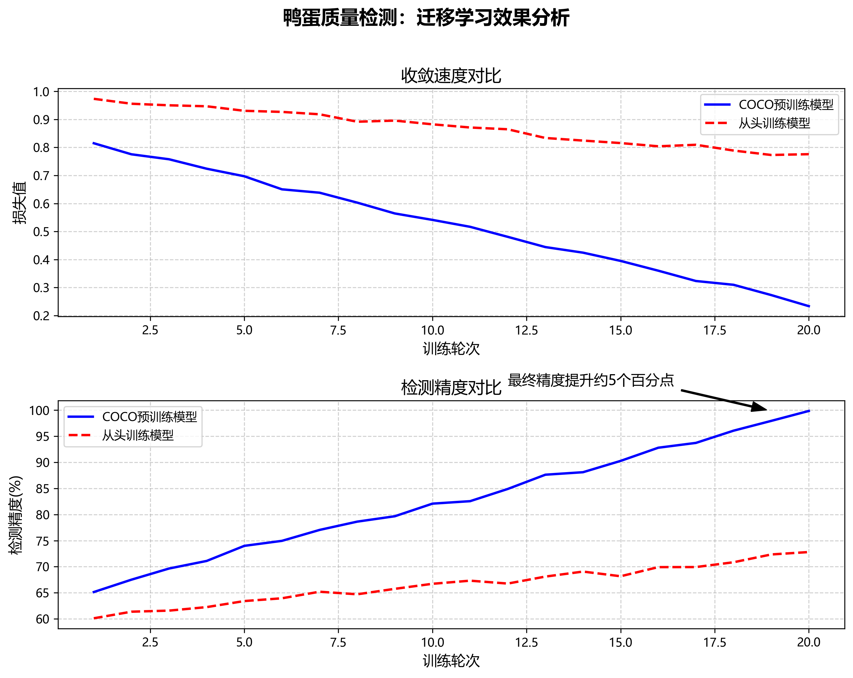 在我们的实验中,使用COCO预训练模型的收敛速度比从头训练快约3倍,最终检测精度提高了约5个百分点。这种显著的性能提升证明了迁移学习在鸭蛋质量检测任务中的有效性。🚀💯