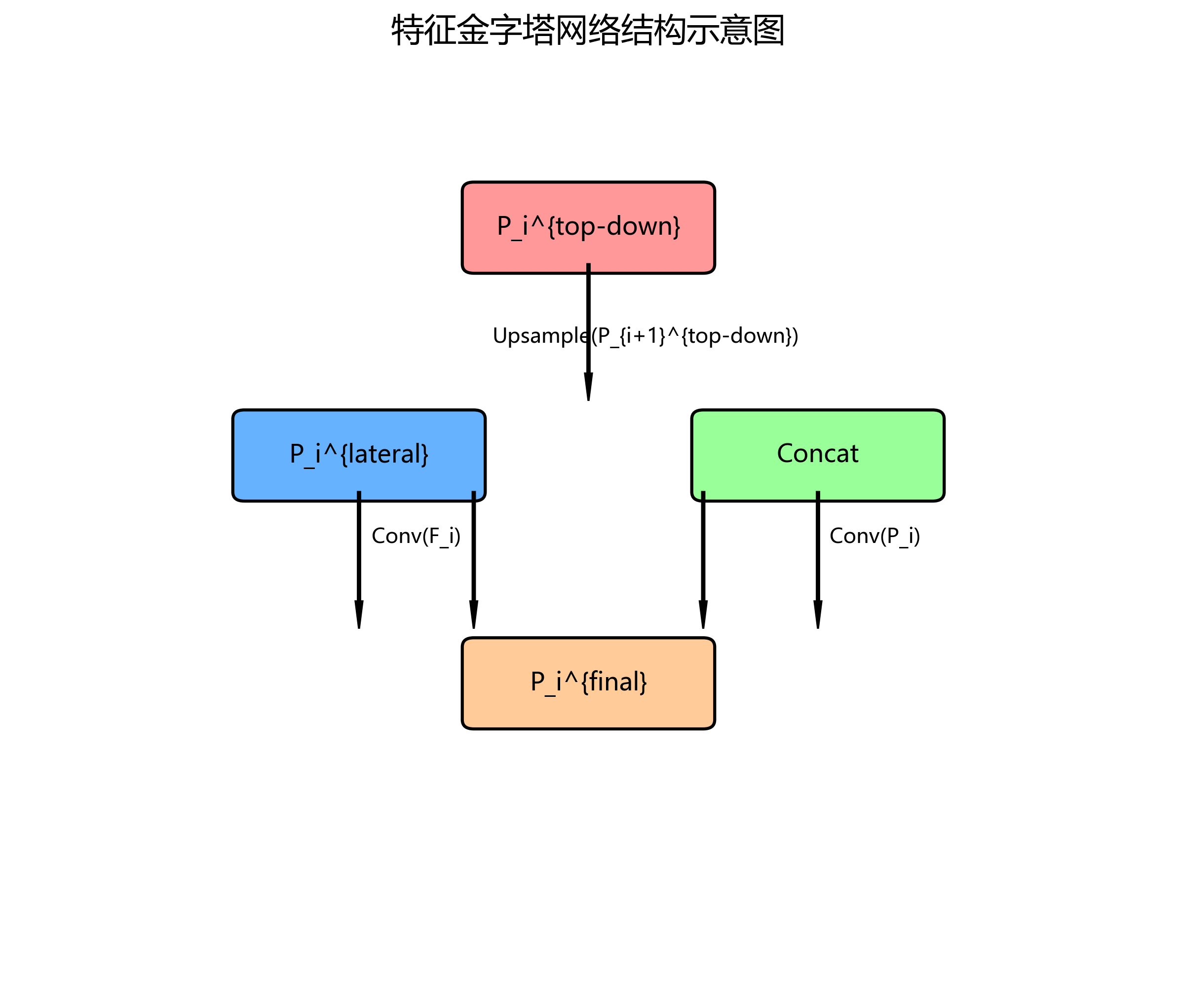 P i t o p − d o w n = U p s a m p l e ( P i + 1 t o p − d o w n ) P_i^{top-down} = Upsample(P_{i+1}^{top-down}) Pitop−down=Upsample(Pi+1top−down)