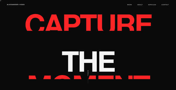 M2.1 可以生成极简主义摄影师个人主页,运用非对称布局与黑白红撞色设计,结合沉浸式影像和粗犷排版,实现了极具冲击力的视觉效果。