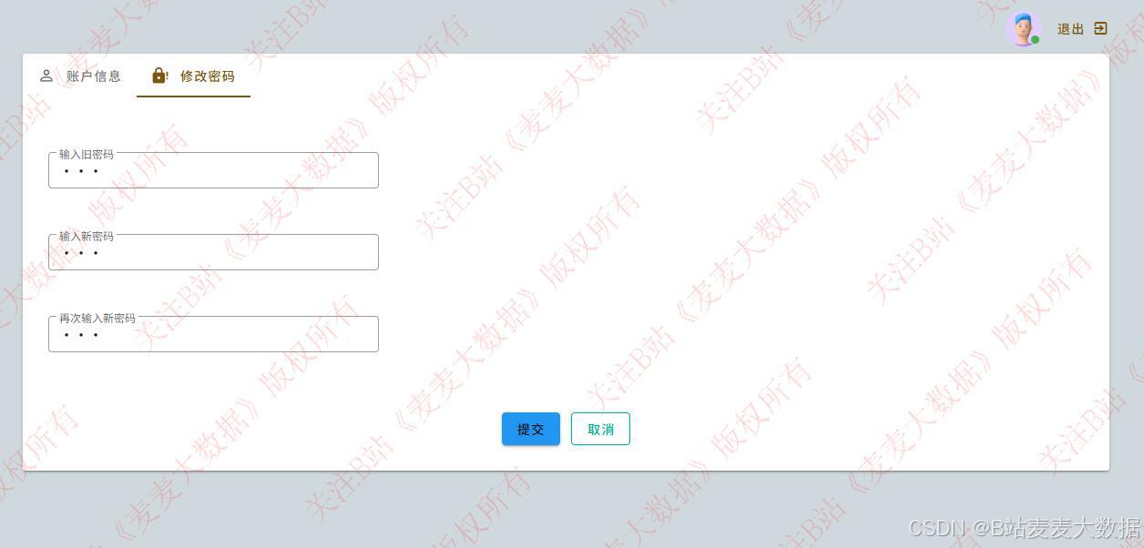 修改密码需要输入用户旧密码和新密码,验证旧密码成功后,就可以完成密码修改。