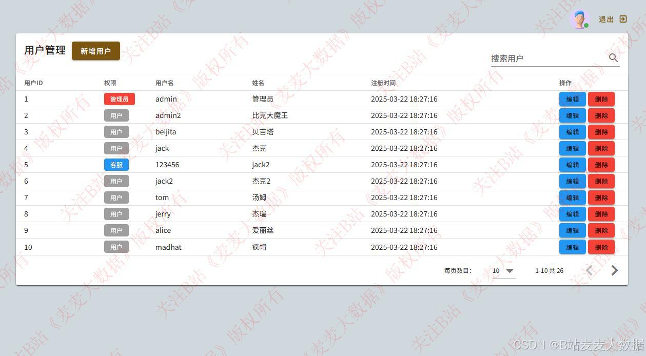 登录注册做的是一个可以切换的登录注册界面,点击去登录后者去注册可以切换。登录需要验证用户名和密码是否正确,密码需经过哈希加密后与数据库中的信息进行比对。注册时,系统会验证用户名是否已存在,并对新用户信息进行合法性校验。