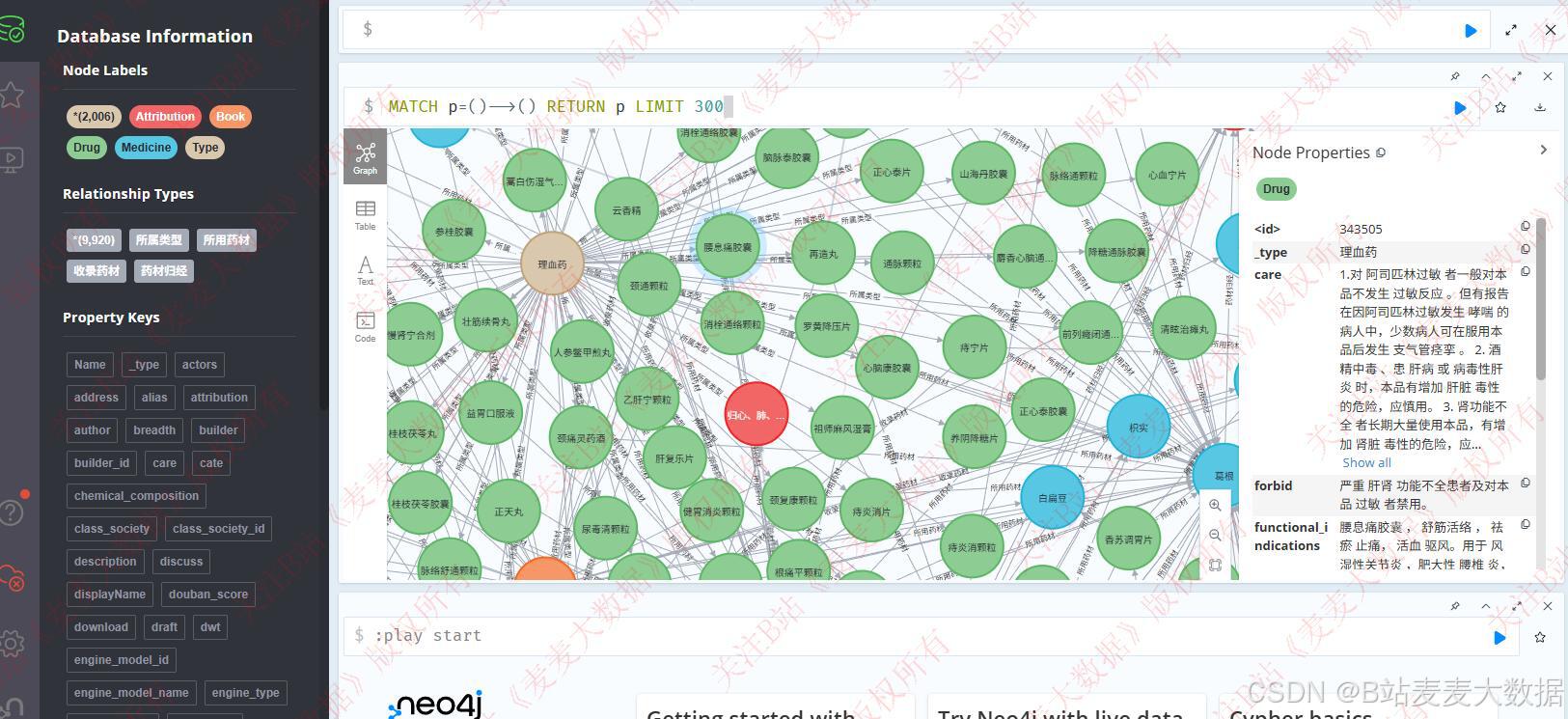py2neo库,结合NLP技术,从养生文本中提取实体和关系,批量写入Neo4j数据库。 - D3.js图谱渲染:利用D3.js库的力导向图(Force-Directed Graph)算法,动态展示Neo4j中的知识图谱节点和连接。