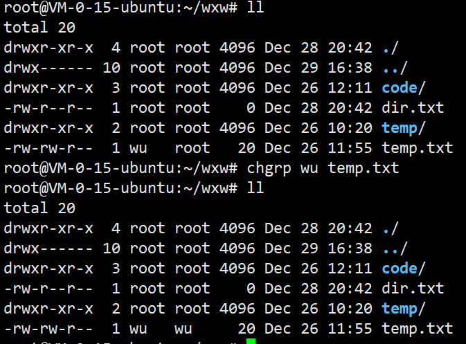 - 文件和文件目录的所有者所在的组的用户(所属组):g --Group