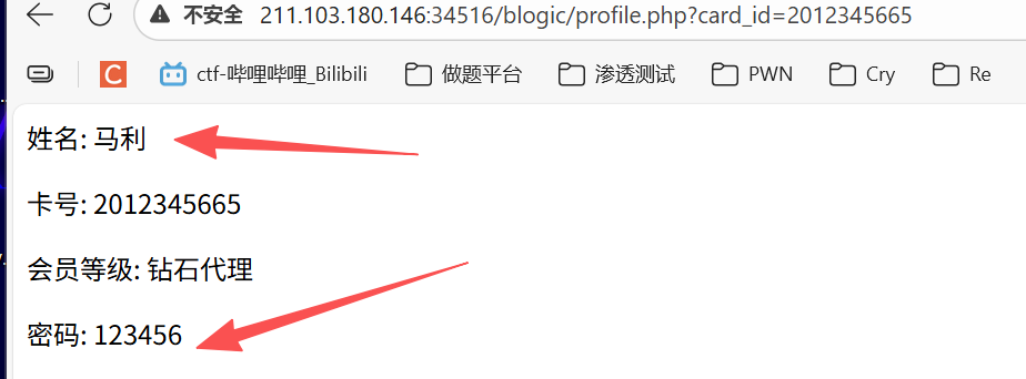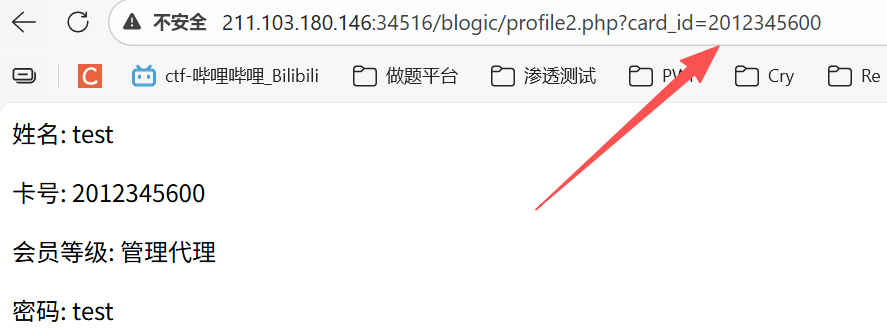 可以看到 /profile2.php?card_id=2012345600 其中对应着卡号: 2012345600