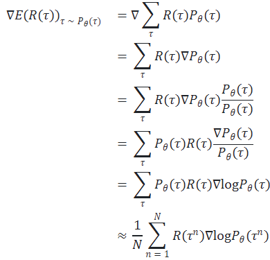 的概率对数进行求导,表示利用策略梯度对期望回报进行优化。