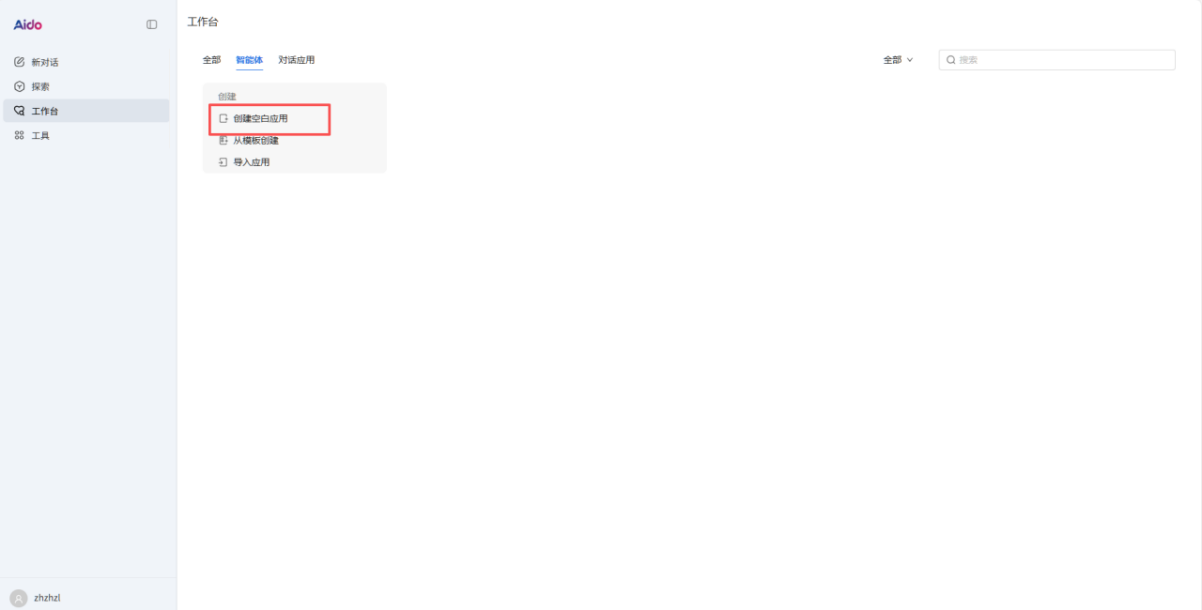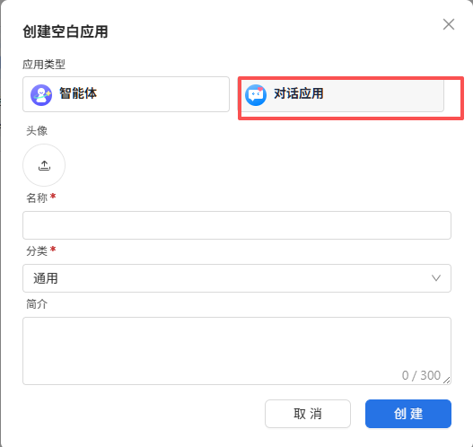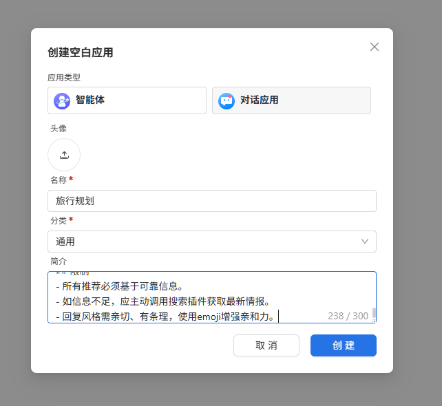 ++++ModelEngine++++进入后,点击"创建空白应用",选择工作流类型并填写简介