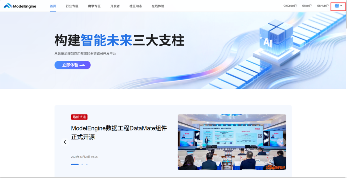 - 进入官方网站并登录账号(++++ModelEngine++++)
