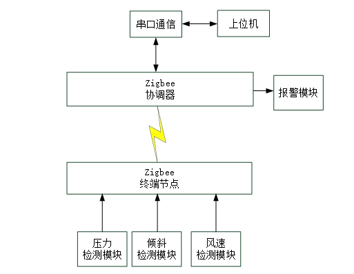 本次基于Zigbee的广告牌安全监测系统,使用Zigbee组网,一共具有2块板子,其中1块作为协调器,另1块作为终端。首先由协调器构建Zigbee网络,终端连上协调器网络后,每隔1秒钟采集一次传感器数据并通过无线发送给协调器。传感器包括压力、倾斜角度以及风速这几个参数。协调器收到来自终端的数据后,通过设定的阈值以及告警开关判断是否触发告警功能。协调器收到这些传感器数据除了处理告警逻辑,也会将数据上报给电脑上位机。通过上位机可实现对阈值的调节。当数据不在阈值范围内,协调器还会启动蜂鸣器和LED组成声光告警功能。上位机具备曲线显示功能,可更直观的看出数据的变化,同时上位机可记录传感器历史记录,方便查看记录。