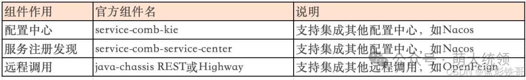 (3) 自行组合兼容性: 一是只提供抽象模式的定义不提供官方稳定实现,二是很多功能(如配置中心、服务发现)是分离的,开发者只能寻求类似Netflix、Alibaba 等不同厂商的组件实现拼装,而每个厂商支持的完善度、稳定性、活跃度各异,可能会存在版本兼容性问题,需要用户自行处理兼容性问题。