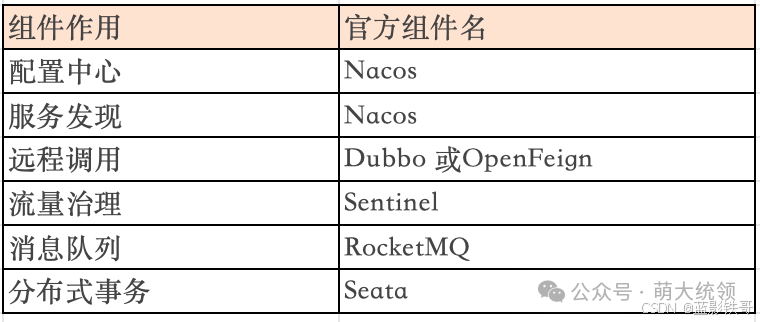 (2) 生态相对集中:Spring Cloud Alibaba的组件主要围绕阿里巴巴的技术栈设计,深度集成了阿里巴巴的中间件(如 Nacos, Sentinel, RocketMQ),虽然这带来了便利,但也意味着你的技术栈在一定程度上被"锁定"在了阿里系生态中。