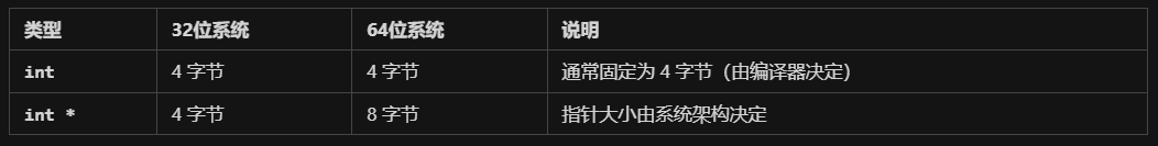 备注:因为int和int *在32系统时,占据字节大小相同 ,所以在隐式转换中,int 和int *表示相同。