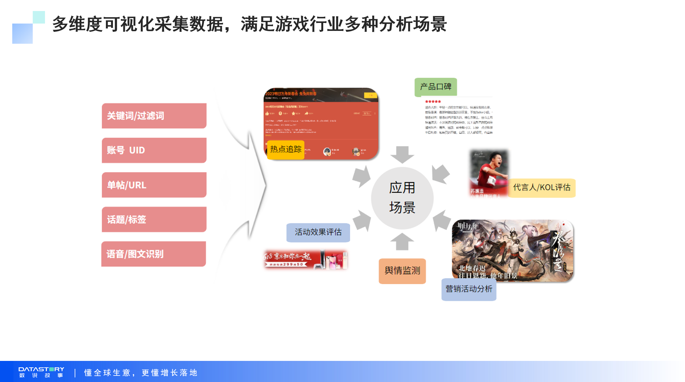 针对上述游戏数据采集常见的难点,数说故事旗下数说聚合一站式数据采集平台,围绕游戏行业特性,构建了覆盖内容采集、语义解析等全链路数据服务能力: