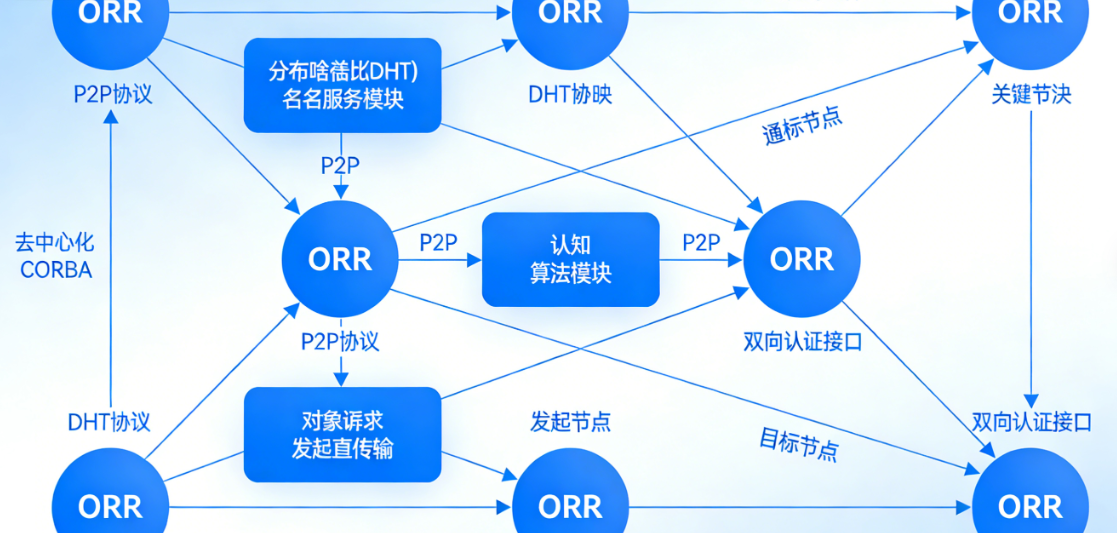 - ORB 间互操作协议扩展:在标准 GIOP/IIOP 协议基础上,增加对等节点的直接通信接口,支持对象地址的分布式解析和请求路由。