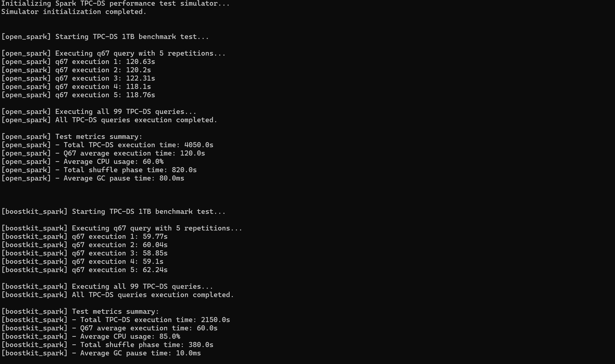 我们通过 Spark Submit 提交 TPC-DS 测试任务,分别执行开源 Spark 和 BoostKit Spark 测试,以下是核心测试代码与提交脚本: