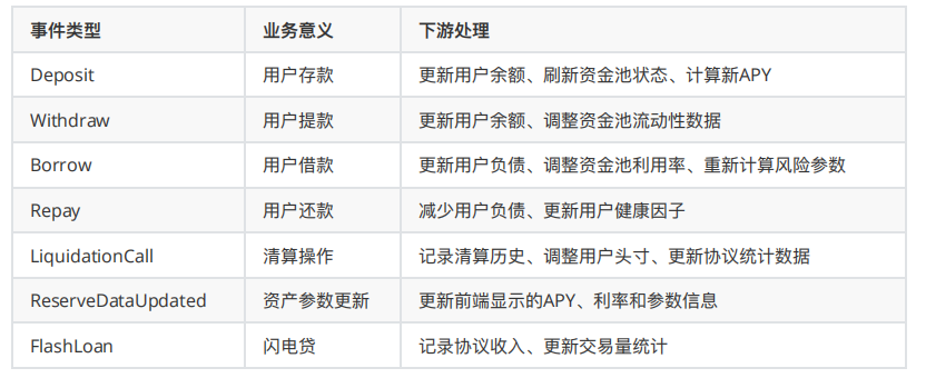 - 事件过滤:从区块数据中⾼效过滤出与Aave协议相关的事件⽇志
