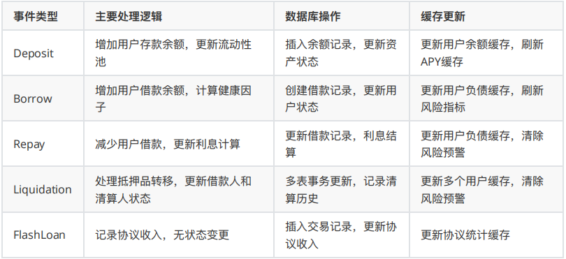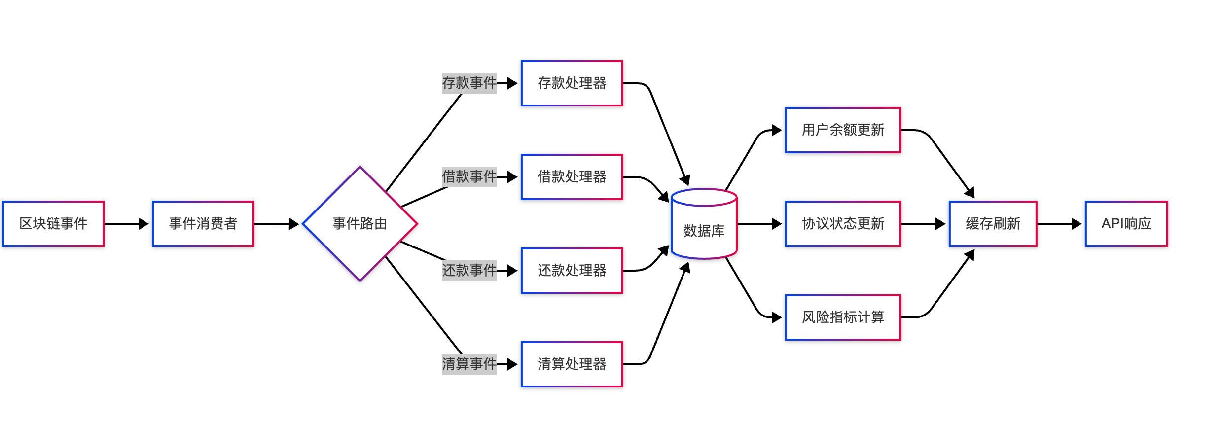 Aave这样的DeFi协议中,事件监听服务是整个后端架构的基础层,它确保了链上发⽣的每⼀笔存款、借款、还款