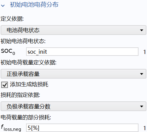 选中**定义电池荷电状态****(SOC)**和初始电荷载量。