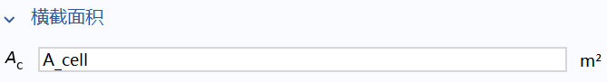 A_cell: 电池的等效横截面积,单位:m²。用于将电池总电流转换为电流密度,使得一维线模型能代表具有三维体积的电池。