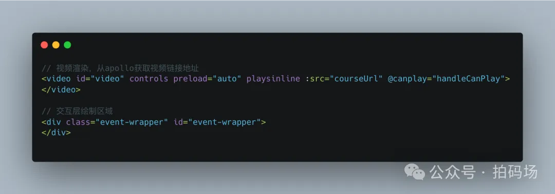 **分层设计:**将视频播放核心(video 层)与交互元素(DOM 层)完全分离,视频层负责基础播放、进度监听,交互层独立承载按钮、动图等交互组件,两者通过时间轴事件联动;