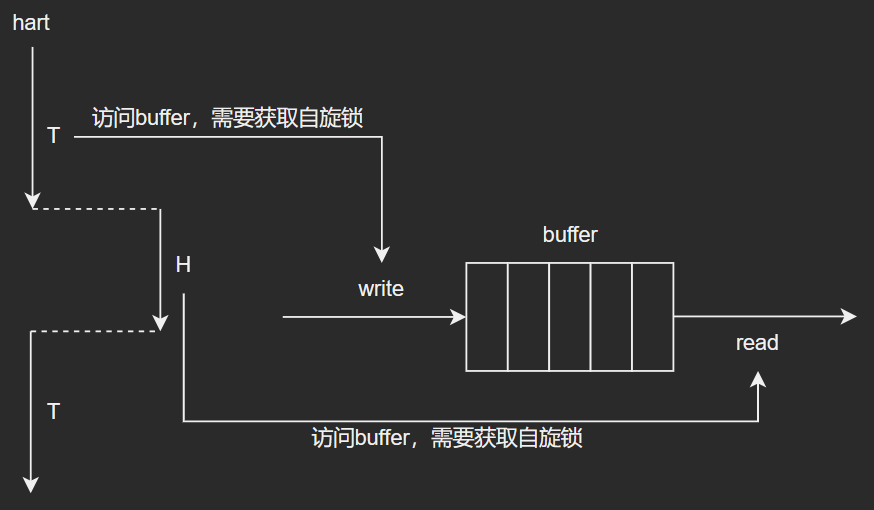 - 当在同一hart中时,其中有一个正在运行的线程T,并且即将访问buffer时,将获取访问此buffer的"钥匙",即自旋锁;