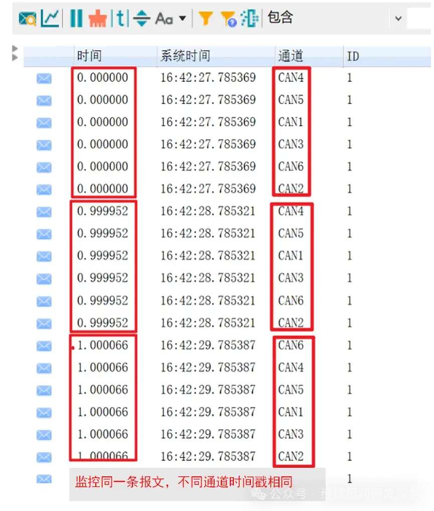 通过FPGA IP核为总线数据记录精准时间信息,提供真正的硬件时间戳,时间戳精度1us。多通道同时收到数据时,时间戳误差不超过1us。支持多设备硬件时间同步功能,多设备同步后间时间戳误差不超过1us。