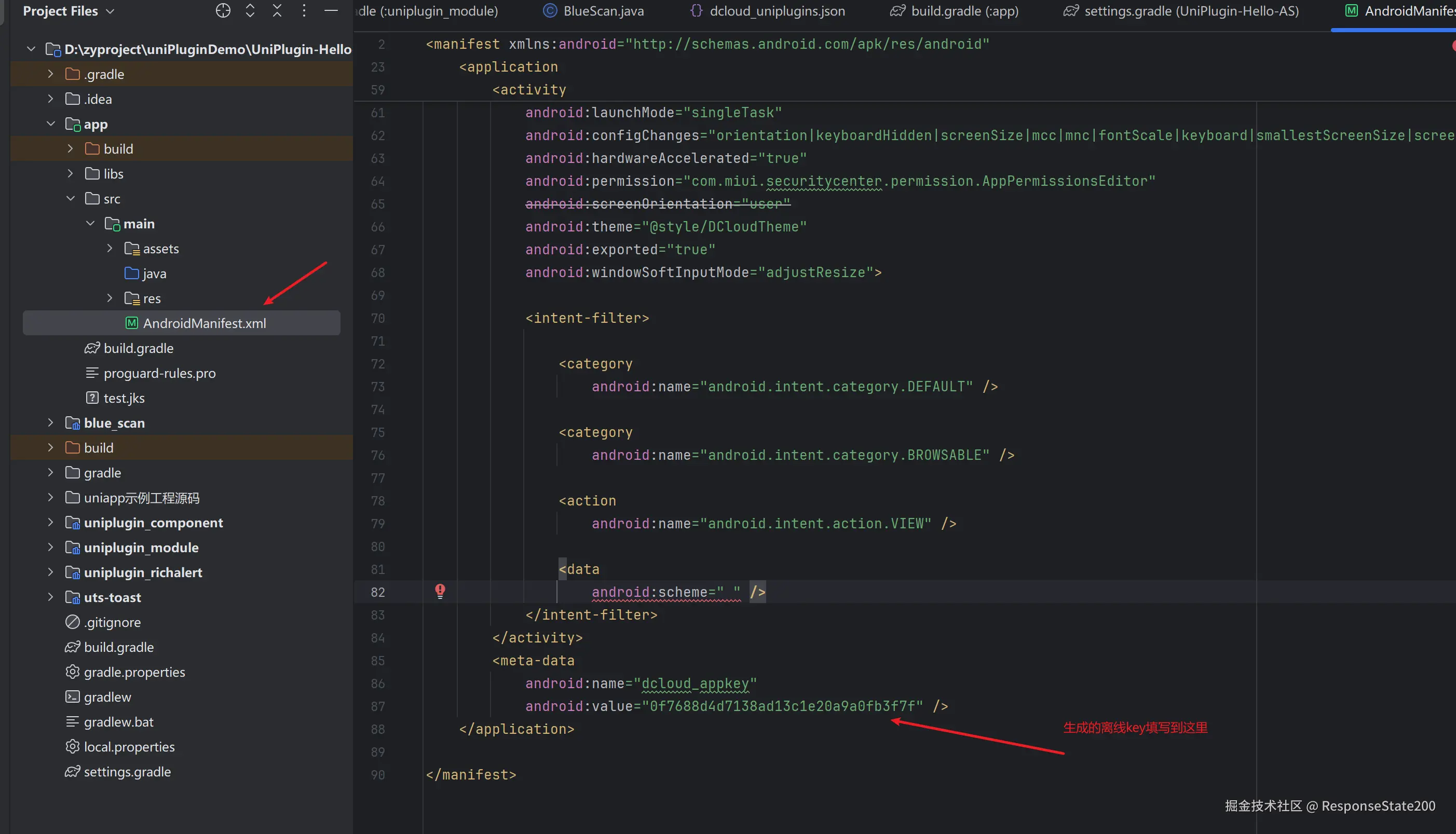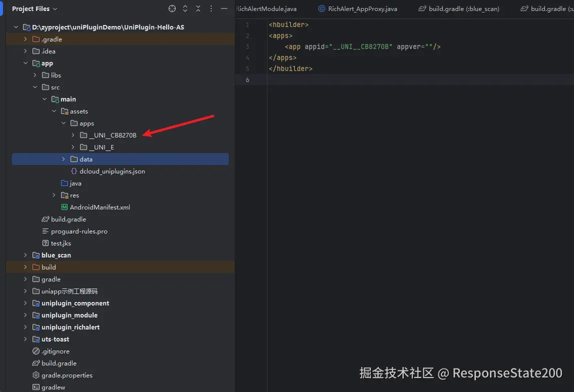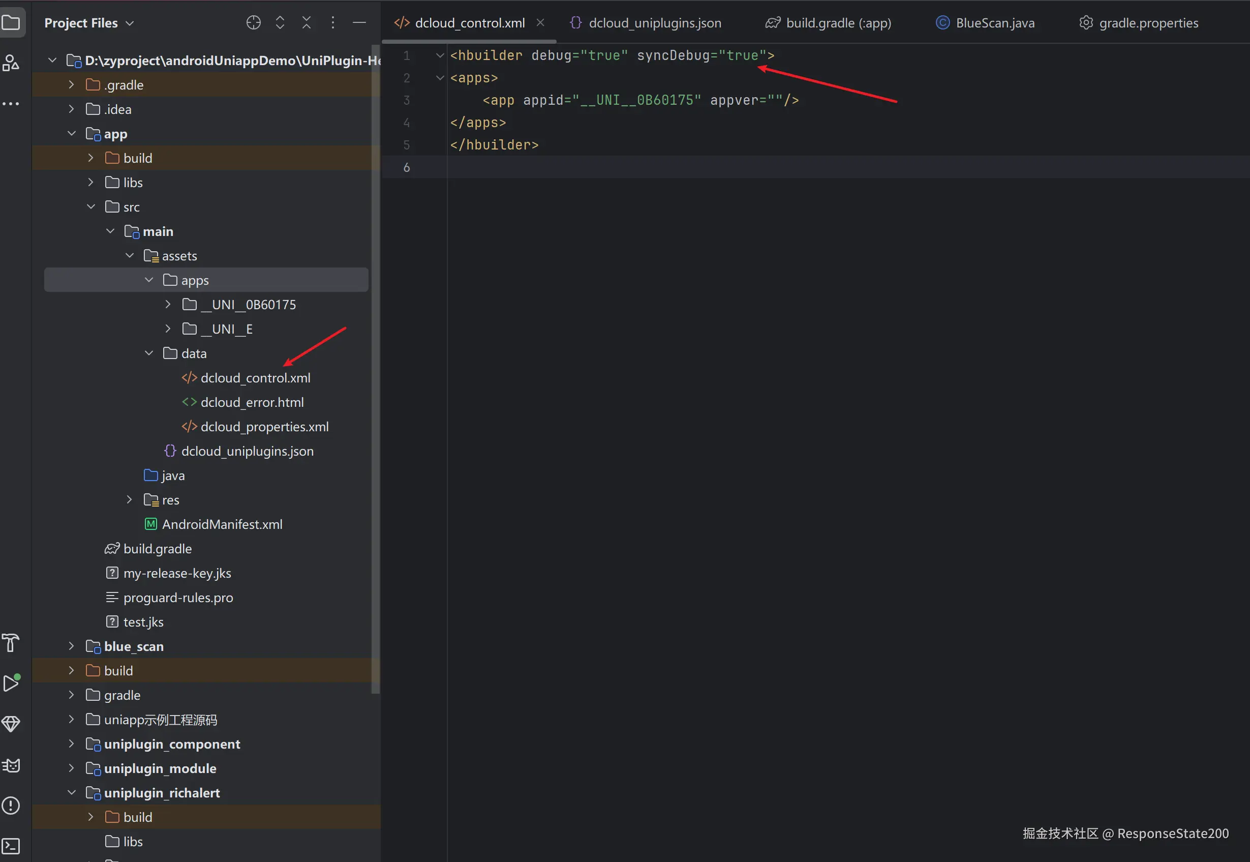 安卓原生的代码调试,最方便的方式就是官方示例中的方式,通过打包uniapp的本地资源放到安卓项目中进行调试,因为uniapp是无法看到安卓原生插件打印的一些输出的,并且uniapp是需要打包自定义基座才能使用安卓原生插件,每次改动插件都需要重新打包自定义基座,效率非常慢。所以我们下面使用官方示例中的方式
