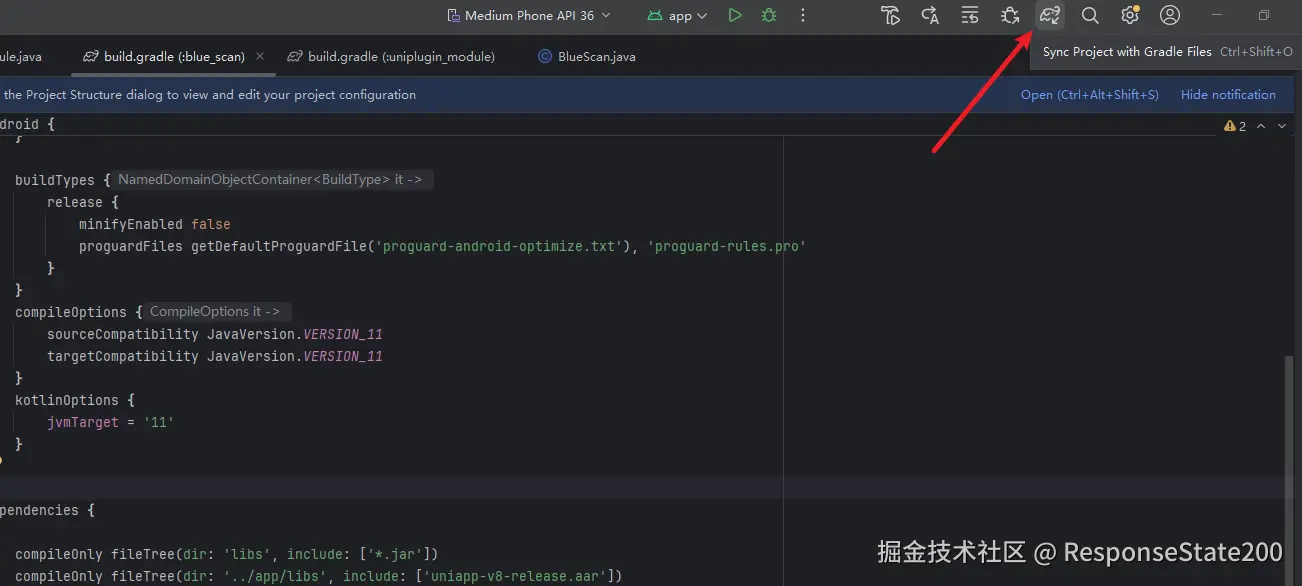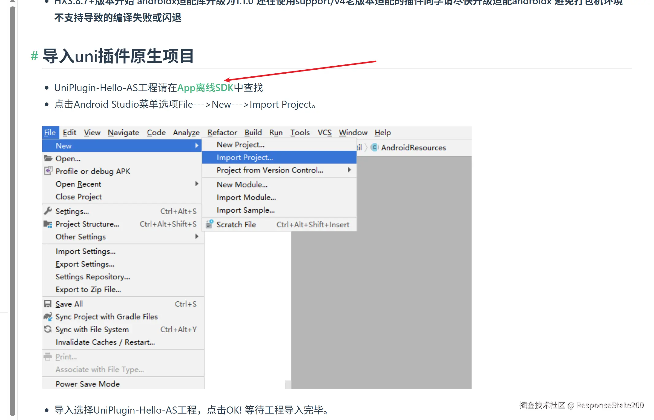 前期准备做好,我们使用android_studio打开UniPlugin-Hello-AS这个项目,等待依赖包安装完成。