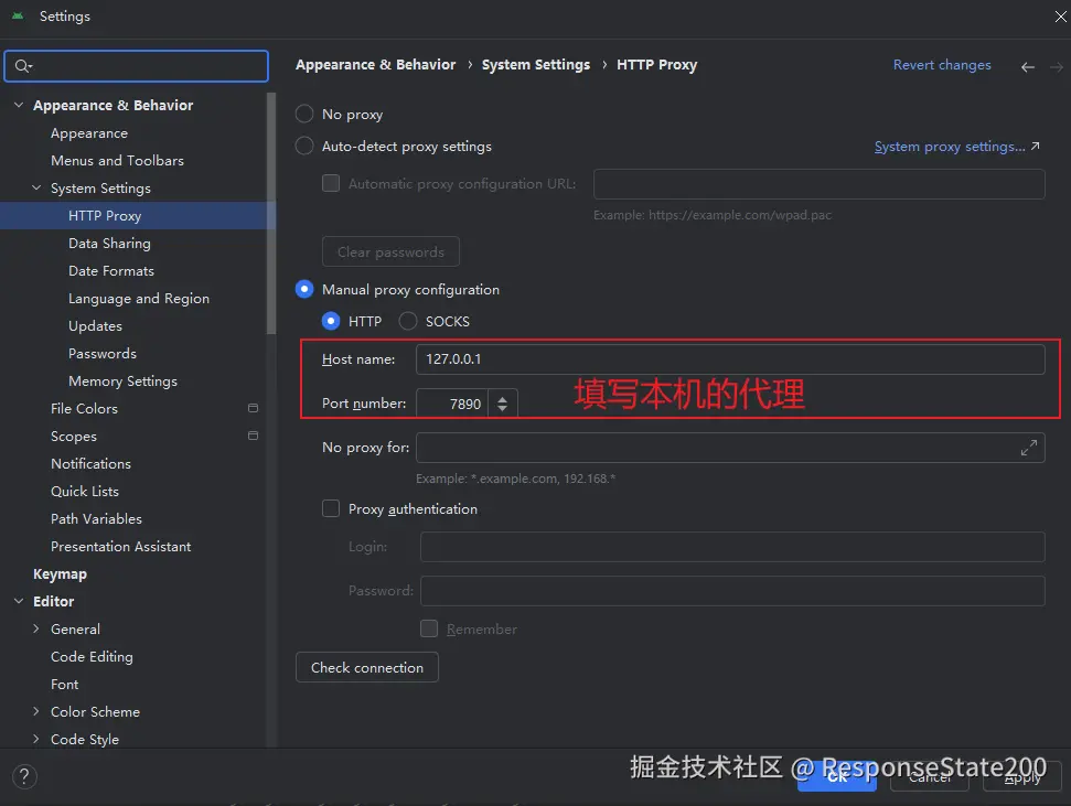 安装依赖包会比较慢,建议使用科学上网,然后在Android-studio上设置一下代理,速度会快很多