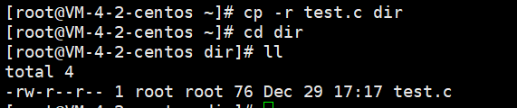 cp -r test.c dir ,这样就可以将test.c拷贝到指定的dir目录下了;