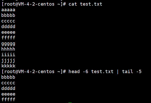 head -6 test.txt | tail -5; (中间的这个|叫做管道)