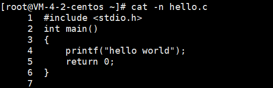 cat -n hello.c,可以给每一行代码带上编号;